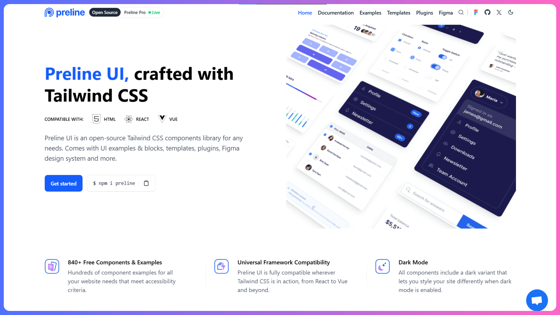 Preline UI is a modern, open-source Tailwind CSS component library, making it a strong alternative to Tailwind Plus. It offers a rich collection of pre-styled components, perfect for building sleek and responsive web applications quickly.